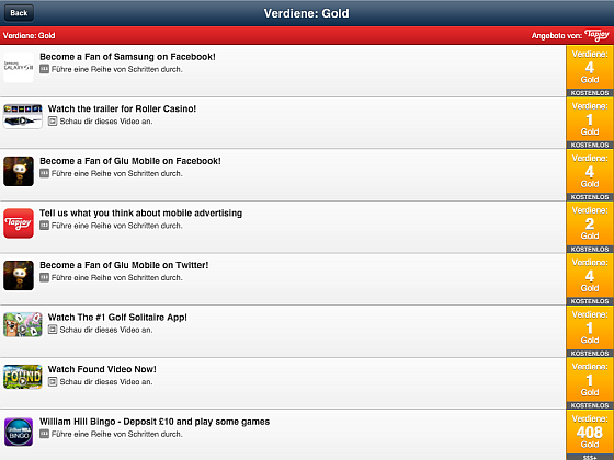 Gestern berichtete das englischsprachige Internetblog TechCrunch über Apples Reaktion auf die Vermarktung von Apps via tapjoy. Nutzer können durch das Downloaden von Apps, Befreunden von App-Herausgebern auf facebook und die Nutzung verschiedener kostenpflichtiger Dienstleistungen virtuelle Währungen erhalten, die sie zum Beispiel in Freemium-Spielen zum Weiterspielen nutzen können. Dazu wird in der werbenden App ein Link auf eine Unterseite gesetzt und mit „Coins kostenlos“ oder „Coins free“ beworben. Klickt der Spieler auf den Link, öffnet sich die tapjoy Seite mit den aktuellen Angeboten.